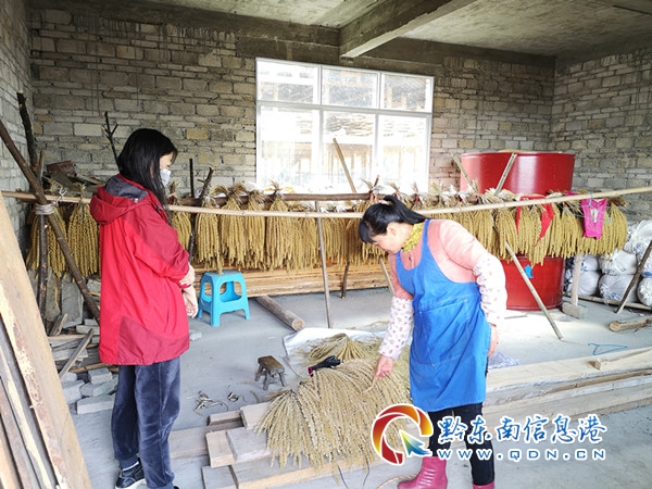 到困難婦女家看有多少小米幫忙帶到縣城來賣