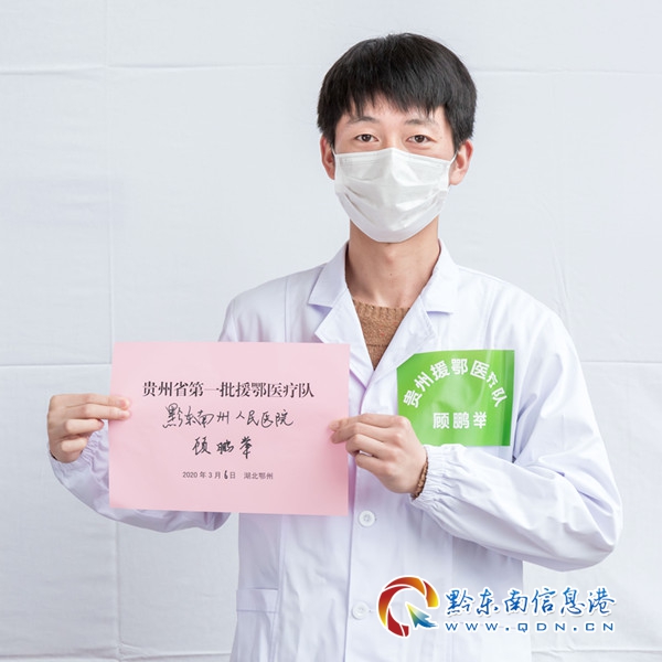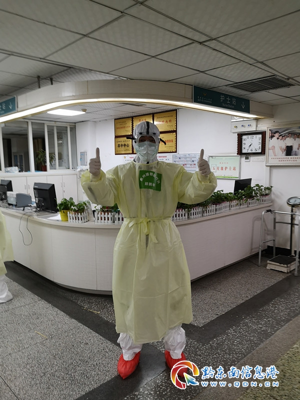 自新冠肺炎疫情發生以來,在院黨委的號召下,當天黔東南州人民醫院就有430名醫護人員主動請戰,顧鵬舉也第一時間遞交了請戰書。國家有難,匹夫有責,顧鵬舉說,他們當護士的,特別是男護士,疫區更需要,能為國家作一點貢獻,肯定要有所擔當,盡自己職責。1月27日中午一點半,正在工作崗位上的顧鵬舉突然接到了通知,兩個小時后到醫院集結立即出發湖北鄂州,直到臨近出發,顧鵬舉才把這個消息告訴了父母,遠在凱棠老家的父母全力支持的同時,全家人也向他隱瞞了顧鵬舉母親的病情,能夠被醫院選中成為醫療隊的一員,對顧鵬舉來說是一種肯定,也是 " 如愿以償 "。