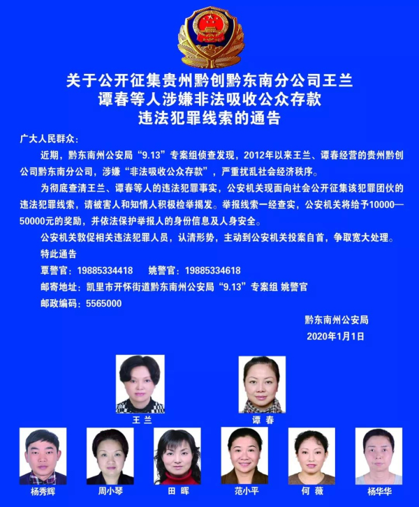 非法吸收公眾存款 黔東南州公安局公開征集這些人的違法犯罪線索