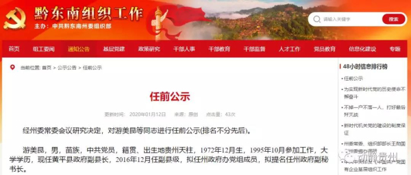 公示時間:2020年1月13日至2020年1月17日止。如對公示對象有問題反映的,或發現其有拉票等違反干部選拔任用工作紀律行為的,請在公示期間向州委組織部干部監督科反映。