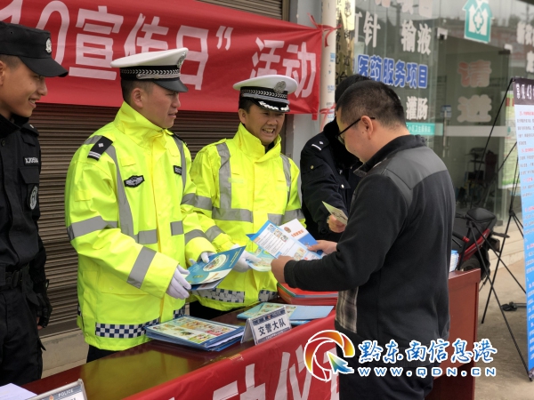 凱里市交警大隊民警向群眾發放宣傳資料。