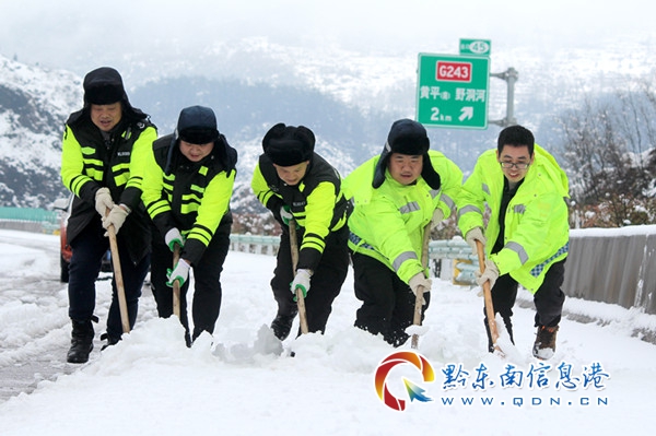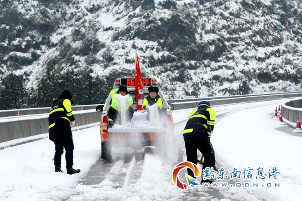 面對此次強降溫雨雪天氣突襲,由于高速公路“一路多方”采取撒融雪劑措施及時,雖然黔東南境內雨雪不斷,黔東南境內大部分路段未出現嚴重凝凍現象,高速公路大部分通行正常,截至目前,只有余凱高速凱里北到施秉方向,凱里北到余慶方向,由于積雪量過大,目前正在緊張搶通中。