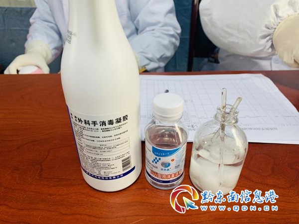 疫情檢測臺上部分消毒藥水