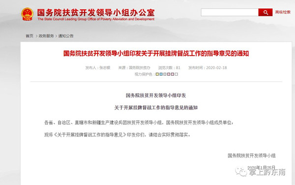 (三)各相關縣按照省區統一部署組織對掛牌村進行督戰。集中優勢兵力,統籌整合資源,強化支持幫扶,確保貧困村按期出列、貧困人口全部脫貧。
