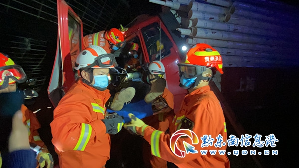 22日1時05分,鎮遠縣消防救援大隊到達現場。在了解現場情況后,鎮遠縣消防救援大隊和岑鞏縣消防救援大隊立即協同作戰,分別利用液壓工具對被困人員被卡位置進行剪切和擴張,擴大救援空間。在鎮遠縣消防救援大隊和岑鞏縣消防救援大隊的協同配合下,1時45分,成功將人員救出,并轉移至救護車上送往醫院進行救治。