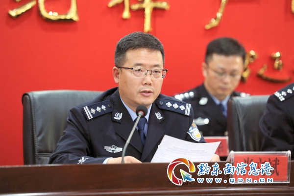黔東南州公安局黨委委員、州交警支隊(duì)支隊(duì)長(zhǎng)肖文斌講話(huà)。