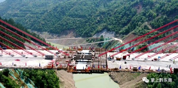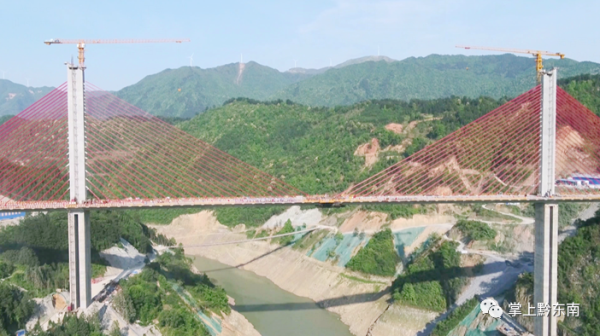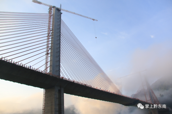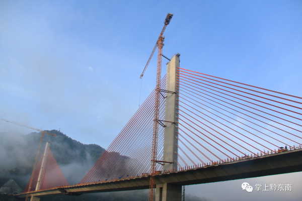 據了解,清水江特大橋全長540米,主跨300米,橋高184米,橋寬28米,總投資1.78億元,是黔東南州跨度最大的斜拉橋,也是劍河縣唯一的一座斜拉橋。作為國內少見的雙塔中央索面預應力混凝土梁斜拉橋,自設計之初,便考慮到美觀、經濟、耐用等特點,同時也給修建施工帶來不小難度。