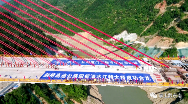 工程建設雖然面臨著地勢、交通、技術等多個方面的挑戰,但最終還是在全體項目組及所有工作人員的努力下,大橋提前完成合龍,接下來,劍榕高速清水江特大橋將進入收尾工程,預計將于6月份完成整體收尾工作,作為劍榕高速的關鍵控制性工程,也為該高速公路的如期建成吹響了第一聲的“勝利號角”。