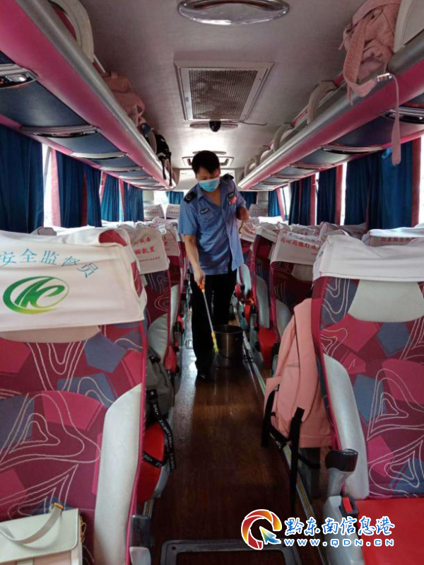 在每一個始發站,每一輛大巴車都經過了仔細的消毒,工作人員為同學們進行測溫并對他們所帶的行李箱進行消殺,每一個環節都保障了學生們能以健康的身體返校復學復課。