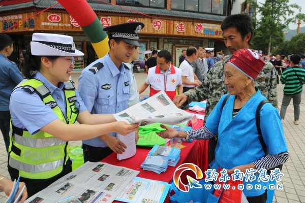 一、深入鄉鎮借“趕集日”開展宣傳。各大隊抓住鄉鎮 “趕集日”群眾聚集的良好契機,開展“一盔一帶”為主題的宣傳教育活動。鎮遠縣公安局交警大隊于5月7日借助蕉溪鎮“趕集日”積極開展“一盔一帶”平安守護宣傳活動。民警通過發放宣傳資料、擺放宣傳展版、面對面講解身邊的事故案例。同時,還向前來趕集的村民及道路兩旁的商販講解發生事故時,駕乘人員系安全帶與不系安全帶、規范戴頭盔與不戴頭盔所帶來的兩種截然不同的后果。凱里市公安局交警大隊龍場片區中隊于5月12日,借助龍場“趕集日” 開展道路交通安全宣傳活動。民警通過以案說法、向群眾發放宣傳資料,宣傳“一盔一帶”安全守護行動,要求駕駛員們時刻樹立安全第一的思想,繃緊交通安全這根弦,做到上車系好安全帶,騎車佩戴好安全頭盔。丹寨縣公安局交警大隊于5月13日借助龍泉鎮“趕集日”開展“一盔一帶”安全知識宣傳,進一步提高廣大群眾的安全防范意識。岑鞏縣公安局交警大隊于5月6日開展摩托車送檢下鄉活動,現場向群眾宣傳“一盔一帶”。