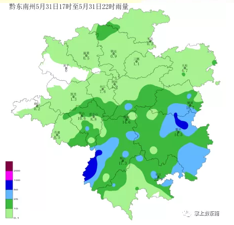 黔東南州氣象臺發布本周天氣(持續強降雨)預報:預計本周我州夜間多強降雨,其中31日夜間、6月2日、4~7日部分鄉鎮有暴雨,個別鄉鎮大暴雨,請注意防范持續強降雨可能引發的城鎮內澇、中小河流洪水、山洪、滑坡、塌方等災害。本周各縣(市)城區最低氣溫20~24℃,最高氣溫28~32℃。具體預報:31日夜間陰有雷陣雨,部分鄉鎮大雨到暴雨;1日陰天間多云,夜間有雷陣雨,部分鄉鎮中到大雨;2日陰天間多云有雷陣雨,部分鄉鎮暴雨,個別鄉鎮大暴雨;3日陣雨轉陰天間多云;4日陰天間多云,夜間有雷陣雨,部分鄉鎮大雨到暴雨;5~7日陰天間多云有雷陣雨,部分鄉鎮暴雨,請注意防范。
