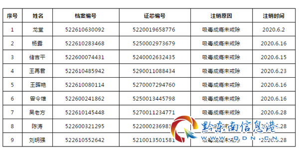 根據《公安部關于修改<機動車駕駛證申領和使用規定>的決定》(公安部第139號令)第七十七條之規定,機動車駕駛人具有被查獲有吸食、注射毒品后駕駛機動車行為,正在執行社區戒毒、強制隔離戒毒、社區康復措施,或者長期服用依賴性精神藥品成癮尚未戒除的車輛管理所應該注銷其機動車駕駛證。根據規定,現將因吸毒成癮未戒除被注銷的駕駛證信息公告如下: