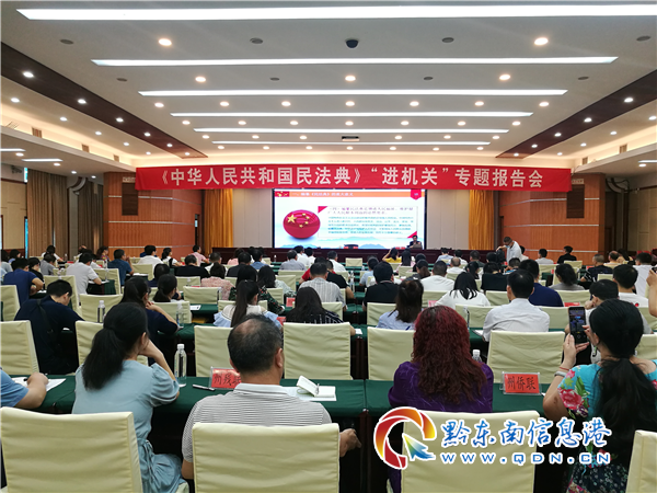 報告會旨在及時引導州直機關廣大黨員干部充分認識實施民法典的重大意義,深入了解民法典的主要內容,深刻領會民法典的精神要領,積極營造學法知法懂法守法的濃厚氛圍,推動民法典的實施走在前、作表率。
