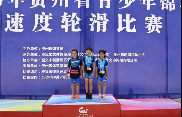 2020年貴州省青少年速度輪滑錦標賽于8月23日至25日在遵義市舉行。全省八個市州代表隊100余名運動員參賽,共設置8個項目。黔東南州代表隊共選派11名運動員參加全部項目的比賽,取得7金、3銀、1銅的優異成績,金牌數和獎牌數排名全省第一。其中,接力賽男隊和女隊包攬所有金牌。