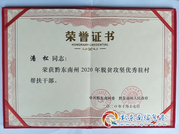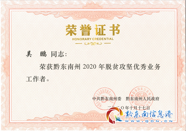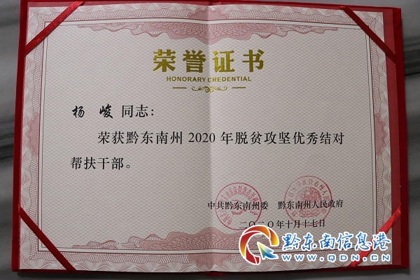 “黔東南州2020年脫貧攻堅(jiān)先進(jìn)個(gè)人”: