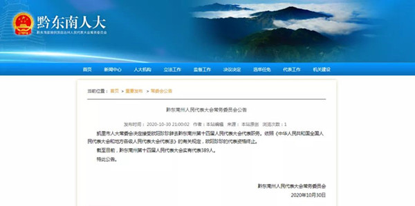 截至目前,黔東南州第十四屆人民代表大會實有代表389人