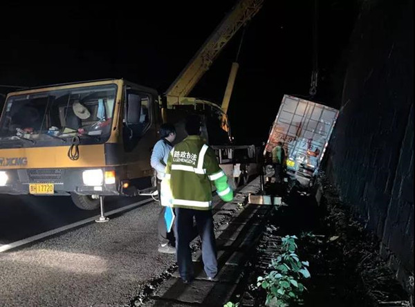 接警后,凱里高速公路管理處雷山路政執法大隊路政員立即驅車前往,一邊維護通行秩序,一邊組織施救工作,以最快速度將搶通此路段交通,于15日凌晨3時左右恢復正常通行。