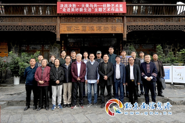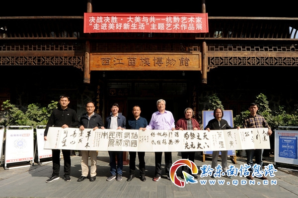本網訊 孟冬時節,陽光燦爛。11月19日,浙江省杭州市西泠印社集團黨委委員、副總經理周海文帶隊舉行的 “走進美好新生活”主題采風助教公益行活動暨“決戰決勝·大美與共”主題書畫巡回展在美麗的西江苗族博物館開展。州文聯黨組書記、主席李文明攜州美協、書協、攝協等協會代表參加了開展儀式,兩地藝術家還進行了展覽、筆會和作品交流學習。中共黔東南州委組織部副部長、