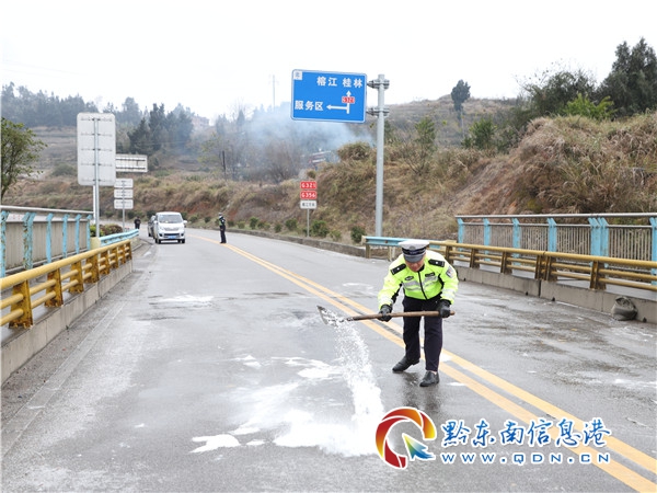 今年的“侗年”遇凝凍!抗凝就是命令,黔東南州公安局交警支隊取消放假,全州全員在崗,全力以赴投入到抗凝保暢工作中,在重點路段增設臨時執勤點,設置提示牌,派民警、輔警值守;對結冰路段進行撒鹽除冰,確保通行;及時發布信息,便于駕駛員擇時出行;最大限度幫助群眾和駕駛員減少因冰雪凝凍災害造成的損失……