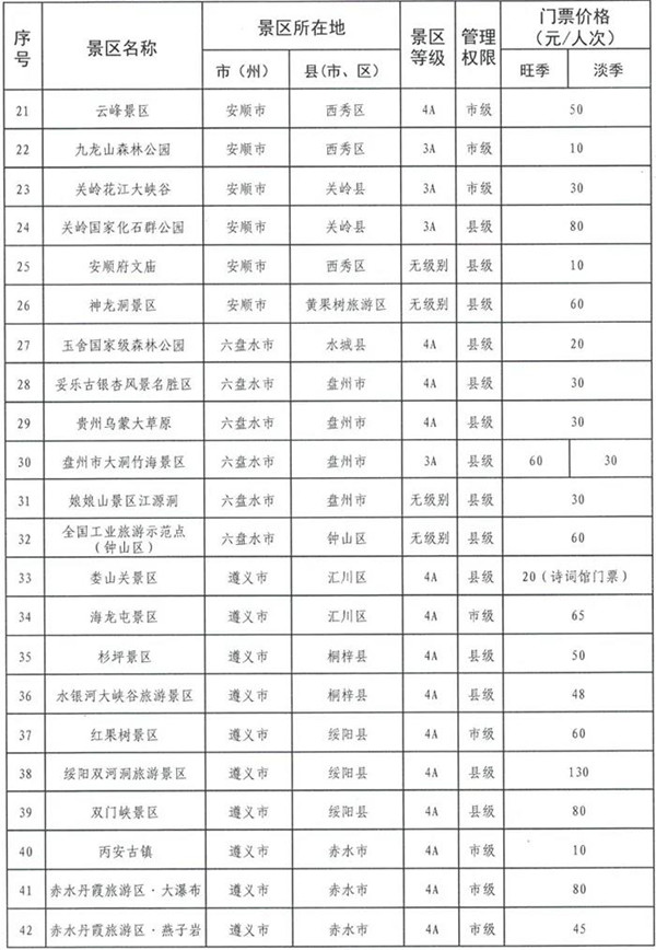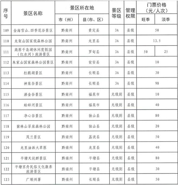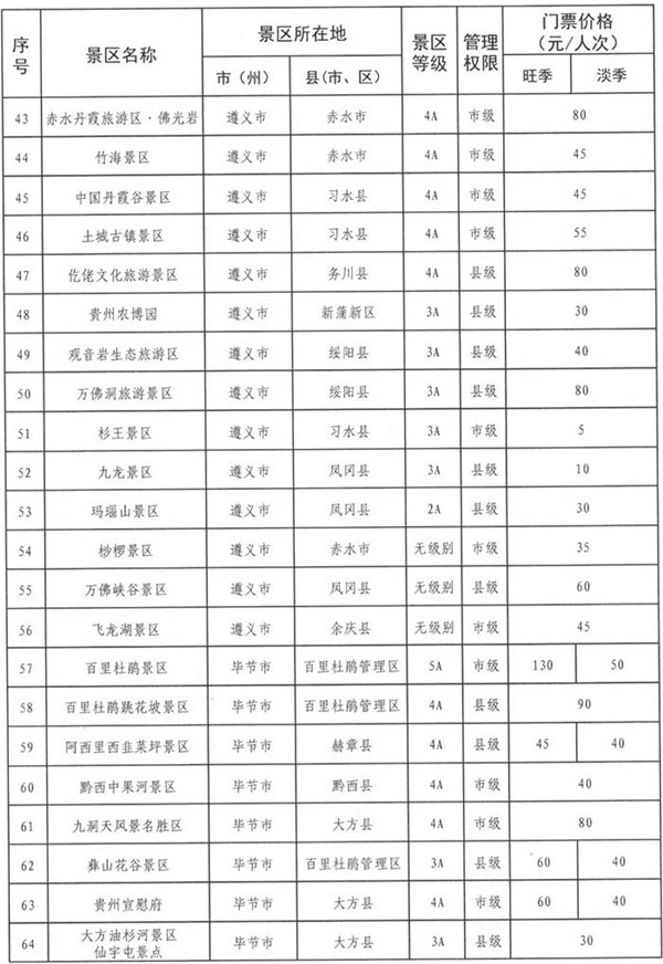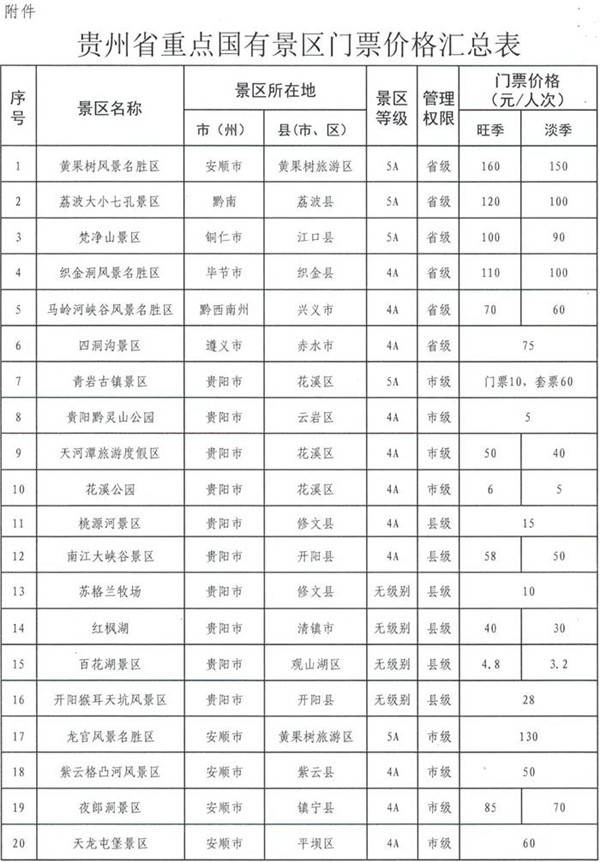 為規(guī)范政府定價(jià)景區(qū)門(mén)票價(jià)格管理,提高景區(qū)門(mén)票價(jià)格透明度,切實(shí)保護(hù)消費(fèi)者合法權(quán)益,營(yíng)造良好旅游價(jià)格環(huán)境,貴州省發(fā)展改革委對(duì)政府定價(jià)景區(qū)的門(mén)票價(jià)格進(jìn)行了調(diào)整并向社會(huì)公布。