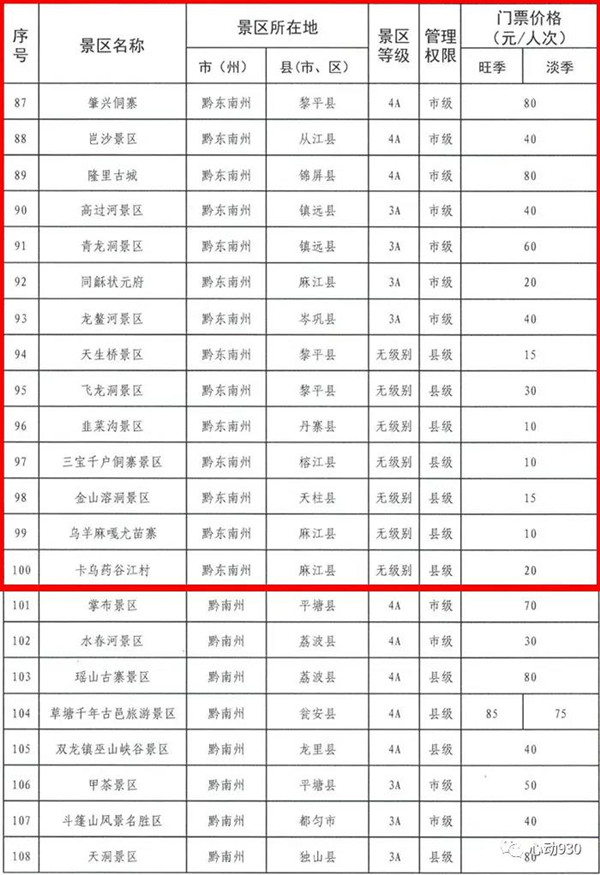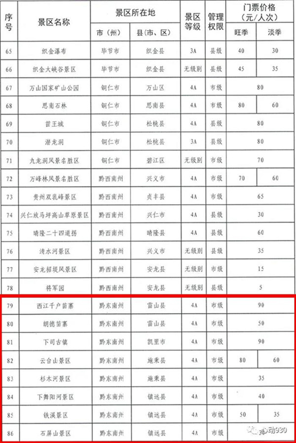 最新!黔東南州 22 個(gè)政府定價(jià)景區(qū)門(mén)票價(jià)格公布