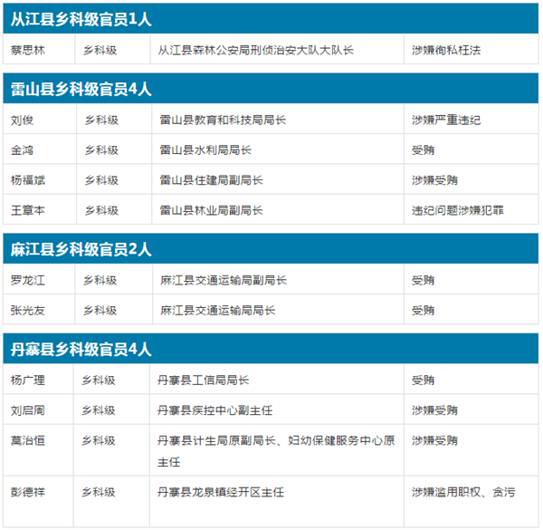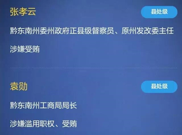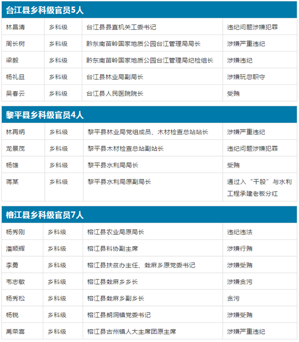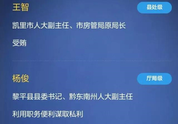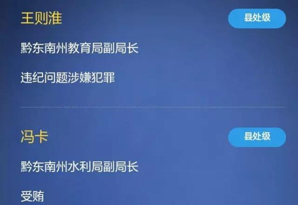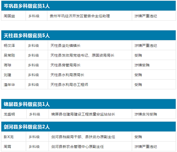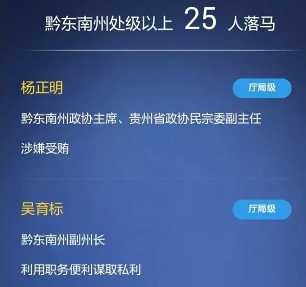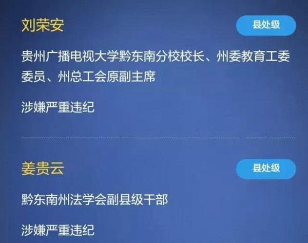 黔東南州直屬單位及直屬單位所轄官員8人落馬