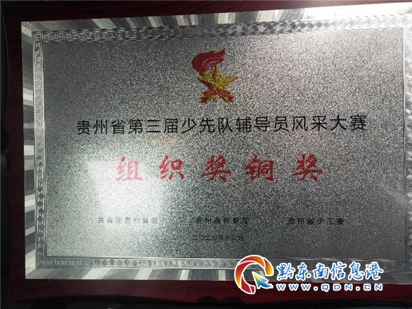 本網(wǎng)訊 近日,由團省委、省教育廳、省少工委聯(lián)合主辦的貴州省少先隊2020年黨的十九屆五中全會精神專題學習班暨少先隊輔導員風采大賽在貴陽舉辦。黔東南州代表隊榮獲貴州省少先隊輔導員風采大賽組織獎銅獎;一等獎2項;二等獎4項。