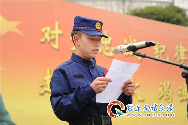 儀式上,羅建勛副政委宣讀了消防員入職培訓通知,新招錄消防員代表做了表態發言。