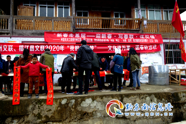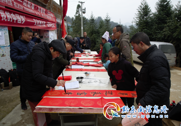 活動現場,墨香四溢,處處洋溢著春的溫暖、年的祥和,圍滿了許多前來欣賞和領取春聯的村民,來自州、縣文聯的書法家們揮毫潑墨,筆走龍蛇,將心底的美好祝愿化作一張張寓意吉祥的書法作品,一副副平安和諧、吉祥如意的春聯,帶著揮別豬年、喜迎鼠年,辭舊迎新的美好祝愿,為即將來臨的春節增添了濃濃的喜慶氛圍,村民們接過寫滿祝福和美好祝愿的對聯時,喜悅之情溢于言表。