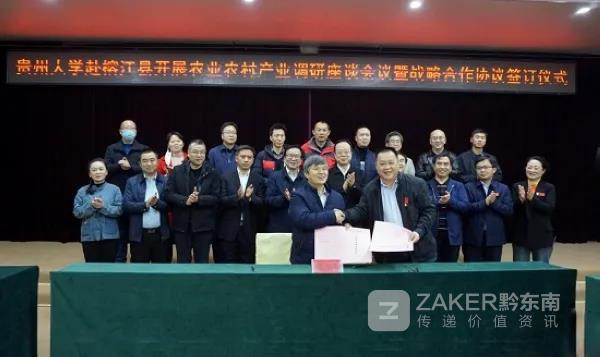 宋寶安與榕江縣縣長侯美彪簽訂《產業革命戰略合作協議》,充分發揮貴州大學人才、技術、科研、信息等資源,建立以政府為引導、企業為主體、高校為支撐的合作關系,對榕江優秀特色產業進行頂層設計、人才培訓、技術指導和品牌創建服務,重點立足榕江縣百香果、蔬菜、中藥材、食用菌、養殖、茶產業指導制定產業發展規劃,開展技術指導、人才培訓、建立產學研聯合研究基地,為產業發展提供技術支撐,形成管理模式先進、技術工藝領先、品牌競爭力強、市場占有率高的產業集群。