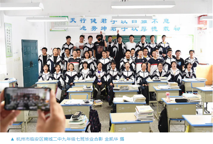 施秉縣第三中學九年級六班的同學與遠在1400公里外的杭州市臨安區錦城二中九年級七班的同學通過釘釘平臺隔空拍攝了一張特殊的畢業照。扶貧先扶志,扶貧必扶智。這一切皆因東西部扶貧協作而結緣,故事也因杭州市臨安區援派