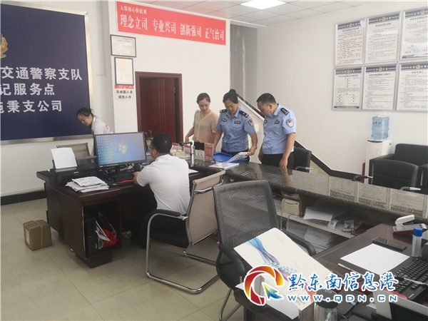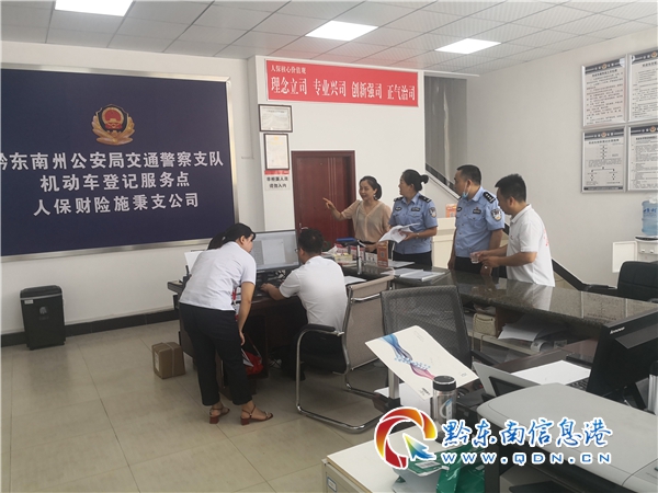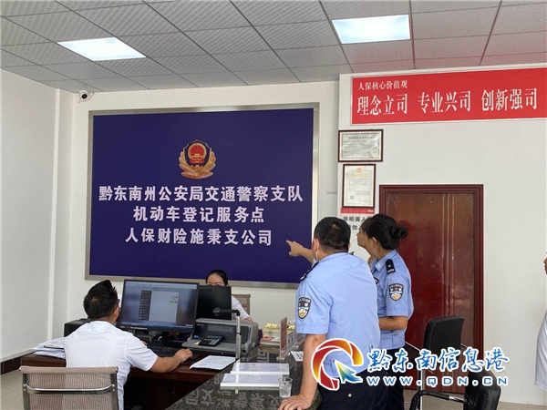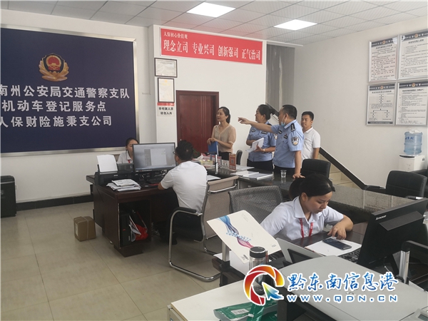本網訊 8月4日,黔東南州公安局交警支隊車管所組織民警,深入人保財險施秉支公司,檢查社會化機動車登記服務點建設情況。對機動車登記服務點完成了階段性建設進度予以肯定,對機動車登記服務點的工作制度完善進行進行了指導,并對做好登記服務工作提出建議。