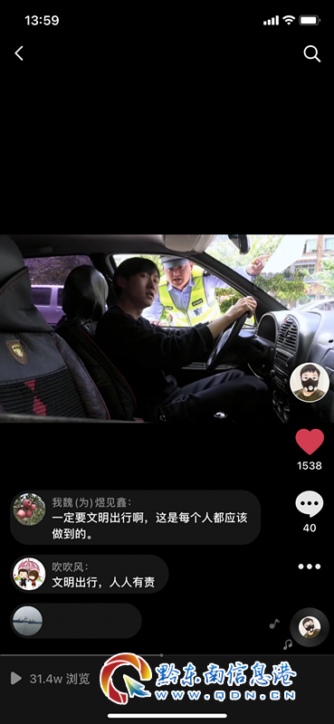 利用抖音短視頻、藍鯨FM直播普法,實現傳統宣傳渠道與新媒體融合不斷深入。大隊已發布短視頻作品16個,開展直播活動11次,累計瀏覽量超過800余萬人次,其中最高瀏覽量高達610萬人次。更多網友了解交通安全知識、交警精神風貌,提高了交通安全宣傳覆蓋面,取得良好效果。(李天紅 徐浩)