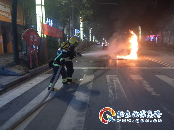 消防員到達現場時,停靠在路旁的小轎車車頭被火焰包圍,滾滾黑煙彌漫路面,給來往的車輛及行人帶來嚴重威脅。根據現場情況,消防員立即鋪設水帶對小轎車起火部位進行撲救,控制火勢不向油箱進行蔓延,同時對油箱進行冷卻,預防油箱爆炸帶來嚴重的次生事故。經過消防員10分鐘的奮力撲救,險情得到徹底排除。大火過后,小轎車面目全非,車頭只剩下一副骨架。