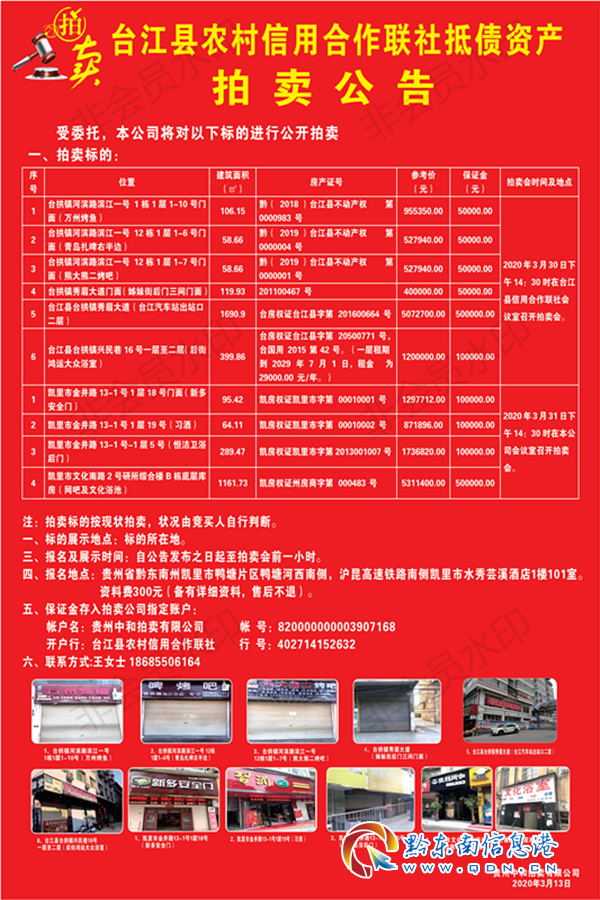 臺江縣農村信用合作聯(lián)社抵債資產拍賣公告