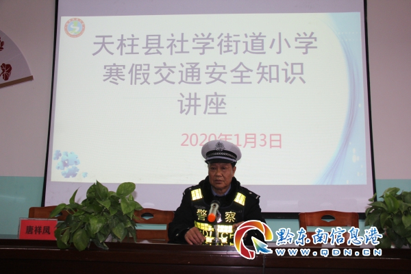 講座上,民警以剖析典型交通事故案例的方式使學生了解不遵守交通安全法律法規導致發生交通事故會帶來的嚴重后果,引導他們在路上步行時要走人行道、不在路上追逐打鬧等行走常識;在乘車時不坐無牌無證無保險車輛、頭手不能伸出窗外等交通安全知識。
