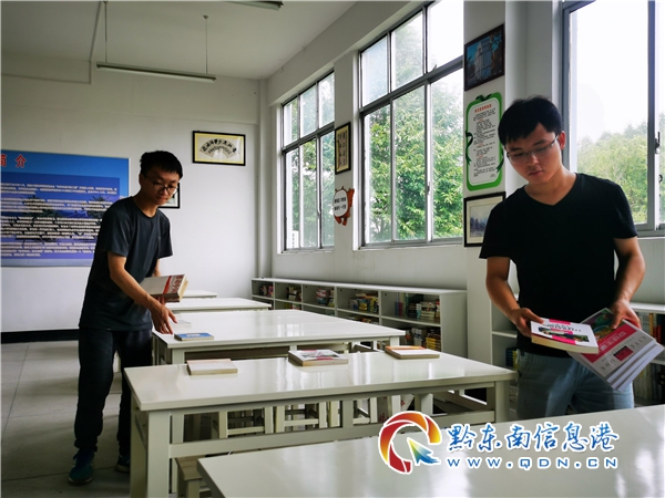 方向定下后,他們立即向學校溝通匯報,積極做好前期準備工作。圖書館建在哪里,圖書從哪里來,圖書館的設備從哪里來等等都是需要解決的問題,每一個問題都涉及到經費,對于還是在校學生的他們來說,都是不小的挑戰。創造一切條件解決一切問題,是新時代志愿者具備的基本條件,他們利用互聯網大數據信息,大量的尋找資助項目。2019年11月,一個偶然的機會,他們了解到光華基金會西部書海工程,便迅速行動起來,以網上募捐的形式,發動全校師生和親朋好友積極參與,經過半個月共籌集到資金4446.71元,圖書1482冊。但是一千余冊圖書面對全校2400余名學生顯然還是遠遠不夠。于是,他們積極向天柱縣教育局、天柱縣圖書館、共青團天柱縣團委等單位爭取,又籌集到5000余冊圖書。加上之前的1000余冊圖書,他們共籌集到6000余冊新圖書,能夠基本滿足學校學生的閱讀需求。