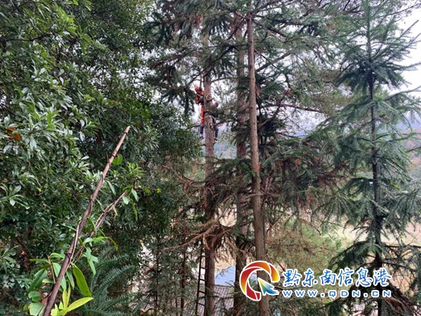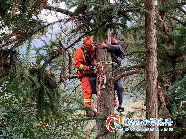 當天早上,卜頭寨一男子因怕降溫落雪壓垮樹枝砸到自家房屋,于是爬到樹上修伐樹枝,怎料爬上去之后恐高,之前斷過血管的雙腿雙手又使不上力,加之下著下雨,天氣寒冷,實在下不來了樹,前后被困樹上近2個多小時,無奈之下只能撥打119報警電話請求幫助。
