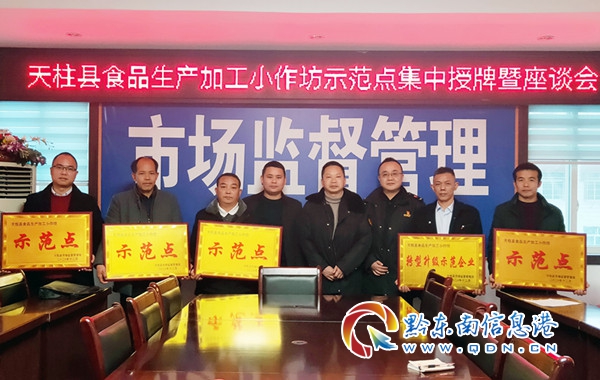獎勵,旨在打造一批具有地方特色、口碑較好、認可度較高、生產過程、質量安全管控嚴格、食品安全有效保障的標桿企業,形成可復制、可推廣的小作坊示范典型,形成一點帶一片的良好示范帶動格局,引導和推動全縣小作坊規范生產、健康發展。圖為天柱縣背簍人家食品廠負責人謝培展等5家示范企業拿到縣市場監管局給予的創建補助金7萬元合影場面。(楊華 黃倩 楊秀明)