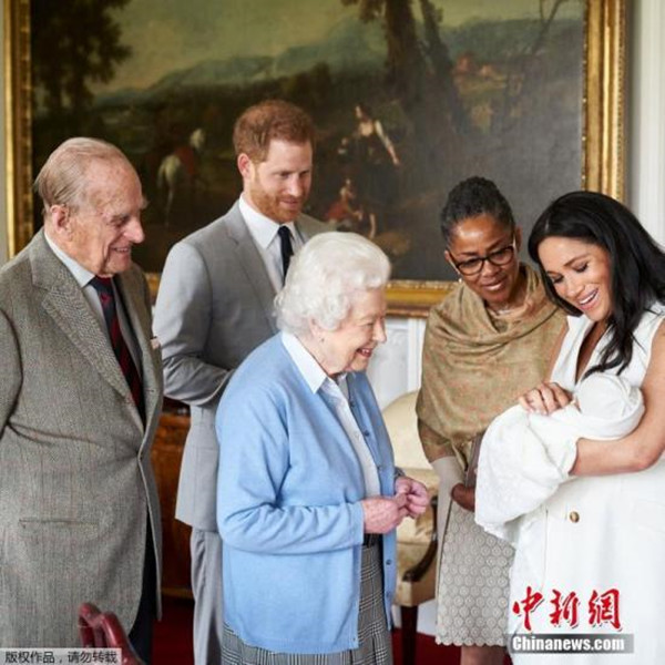 2019年5月8日,英國溫莎,當天下午,英女王伊麗莎白二世在溫莎城堡看望自己的曾孫。