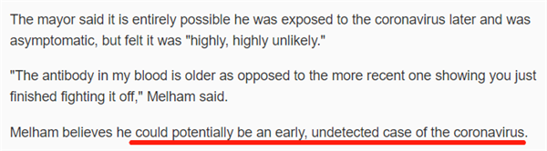 檢測(cè)顯示梅勒姆已有新冠病毒抗體,且已存在較長時(shí)間