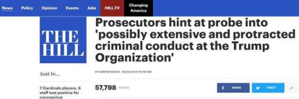 檢察官還提到,《紐約時報》在2018年的一項調查發現,特朗普在上世紀90年代管理特朗普集團時,采用了“可疑的稅收方案”,包括“公然欺詐”。而《華爾街日報》的一篇報道則詳細描述了針對特朗普前律師邁克爾·科恩的指控,即總統要求他向兩名聲稱與總統有婚外情的女性支付封口費。檢察官辦公室先前在發出傳票時援引了這些指控。