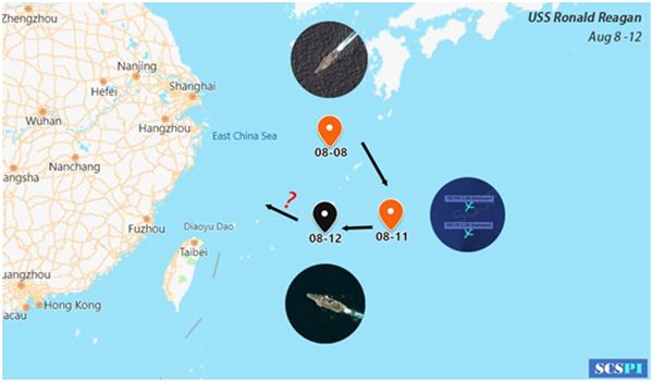 “南海戰略態勢感知計劃”8月13日發布“里根”號航母活動軌跡圖
