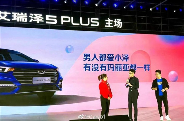 12 月 19 日,奇瑞新車艾瑞澤 5 PLUS 在合肥正式上市。在介紹這款車型時,官方在背景 PPT 上打出一則宣傳文案:" 男人都愛小澤,有沒有瑪麗亞都一樣 "。