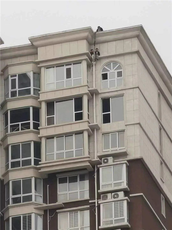 事后,經了解,3個男孩的年齡分別是5歲、6歲、8歲。他們乘坐電梯來到頂層33樓,進入天臺玩耍,一陣風把樓頂大門鎖住了。然后,他們沿著樓頂下水管道爬到33樓空調外機平臺,卻被困住,于是呼喊求救。