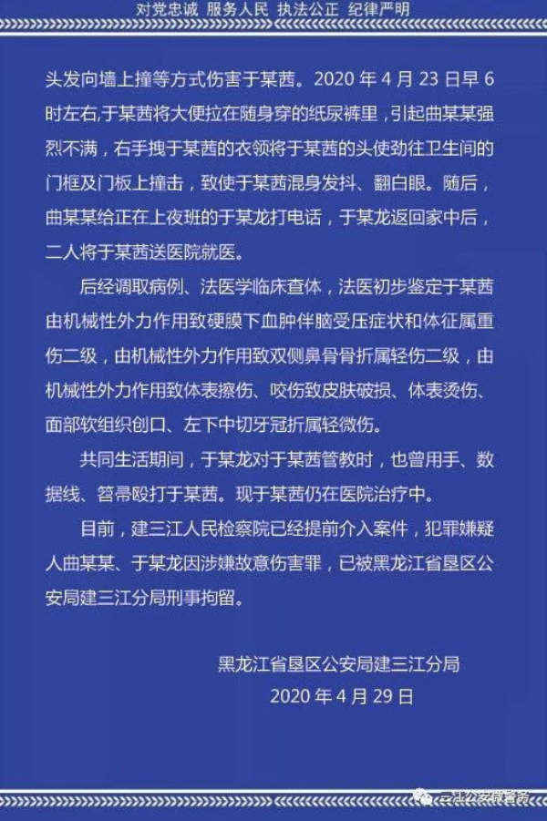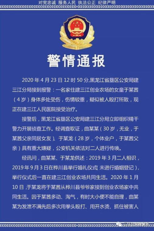 警方通報“黑龍江女童被虐打”:其父涉嫌故意傷害罪被刑拘