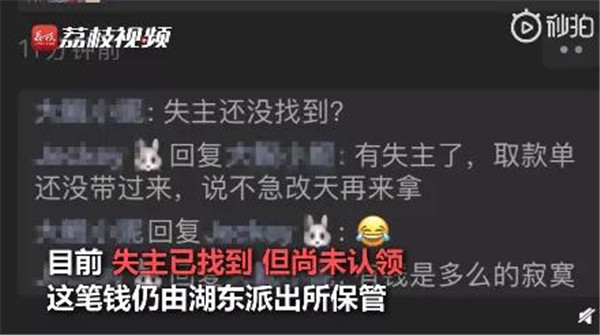 目前,失主已找到,但尚未認(rèn)領(lǐng),說“不急改天再來拿”,這筆錢仍由派出所保管。