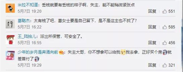 網(wǎng)友:丟錢要有丟錢的樣子,失主,能不能緊張點!