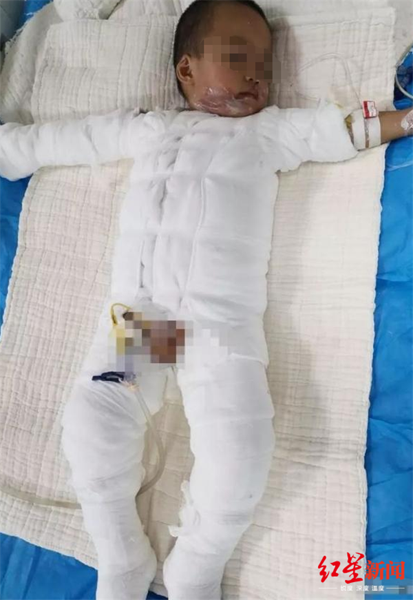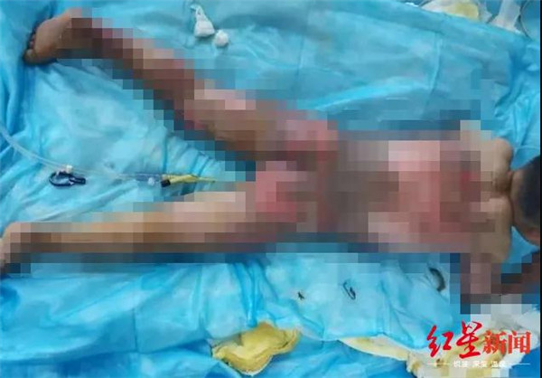 雷先生趕忙把孩子抱起來往醫(yī)院送,當(dāng)他接觸到小雷的皮膚時(shí),能感受到小雷身上溫度極高,自己的手也因?yàn)楸粻C了幾個(gè)水泡。