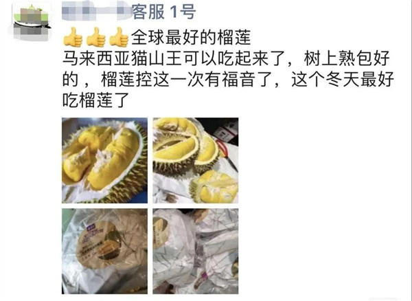 2020年3月,有人舉報浙江慈溪觀海衛某水果店用于推廣的微信號朋友圈內出現了兩則可能涉嫌違法的廣告。其中一則是2月25日通過“某客服1號”發布的介紹榴蓮的廣告,存在“全球最好的榴蓮......這個冬天最好吃榴蓮”廣告字樣;另一則是2月26日通過“某客服1號”發布的介紹奶油棗的廣告,存在“最好吃的奶油棗沒有之一”廣告字樣。